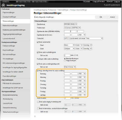 *Hvis strømmen ikke kan slås AV automatisk på det angitte klokkeslettet, vil det bli gjort forsøk opptil ti ganger i intervaller på ett minutt. Hvis det ikke er mulig å slå av strømmen selv etter ti forsøk, vil det være umulig å slå av strømmen automatisk denne dagen.