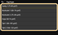 Hvis skjermbildet vist over ikke vises når papir er lagt innHvis du alltid legger i samme papir i flerfunksjonsskuffen, kan du hoppe over innstilling av papir ved å registrere papirformatet og -typen som standardinnstillingen. Når standardinnstillingen er registrert, vises derimot ikke skjermbildet vist over. For å vise skjermbildet, velger du <Angi når papir lastes> (Registrere standard papirinnstillinger for flerfunksjonsskuffen).