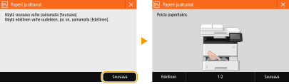 Kun poistat juuttunutta paperia, älä katkaise laitteesta virtaaVirran katkaiseminen poistaa tulostettavana olevat tiedot. Ole erityisen varovainen, kun vastaanotat faksiasiakirjoja.