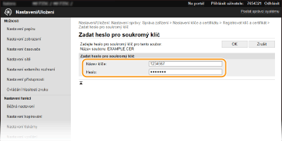 [Heslo] Formou alfanumerických znaků zadejte heslo soukromého klíče nastaveného pro soubor, který chcete uložit.