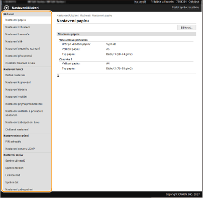 Prostřednictvím Vzdáleného uživatelského rozhraní můžete změnit různá nastavení zařízení. Většinu nastavení je možné zadat i prostřednictvím zařízení, existuje však několik nastavení, která lze zadat pouze prostřednictvím Vzdáleného uživatelského rozhraní. V této části je popsán základní postup, jak změnit nastavení zařízení pomocí Vzdáleného uživatelského rozhraní.