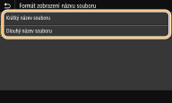 Vyberte možnost <Krátký název souboru> nebo <Dlouhý název souboru>