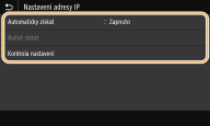 Zkontrolujte, zda je volba <Automatická adresa IP> nastavena na <Zapnuto>.