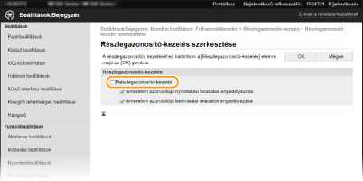 A részlegazonosító-kezelés engedélyezéséhez jelölje be a jelölőnégyzetet. Ha nem szeretné használni a részlegazonosító-kezelést, akkor törölje a jelet a jelölőnégyzetből.