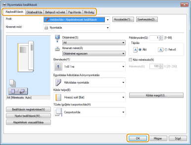 Az <Ill.progr.beáll.-nak prior. nyomtatáskor> beállítást <Be> értékűre állítva a nyomtató-illesztőprogramban megadott papírforrásból nyomtathat, függetlenül a készüléken megadott papírbeállításoktól. <Ill.progr.beáll.-nak prior. nyomtatáskor>