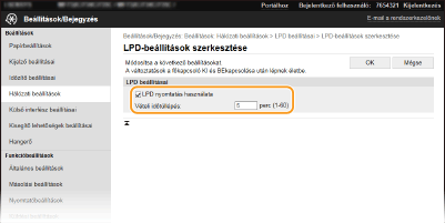 WSD-n keresztüli nyomtatáshoz jelölje be ezt a jelölőnégyzetet. Ha nem használ WSD-nyomtatást, akkor törölje a jelet a jelölőnégyzetből. [WSD-böngészés használata]