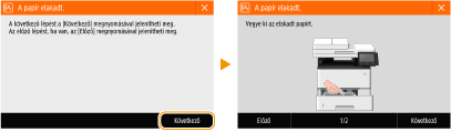 Az elakadt papír eltávolítása közben ne kapcsolja ki a készüléketHa kikapcsolja a készüléket, azzal törli róla az éppen nyomtatott adatokat. Faxdokumentumok fogadásakor legyen nagyon óvatos.