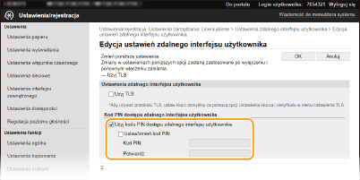 Jeżeli inicjowane są <Ustawienia zarządzania>Kod PIN do dostępu do Zdalnego interfejsu użytkownika jest także inicjowany. Po inicjalizacji należy zresetować kod PIN. <Zainicjuj menu>