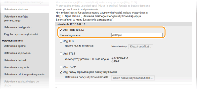 Konfiguracja ustawień uwierzytelniania zgodnego z IEEE 802.1X