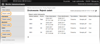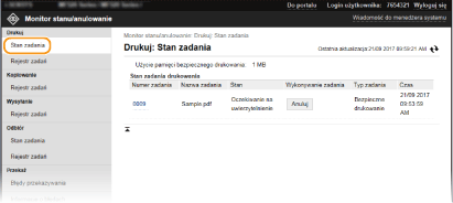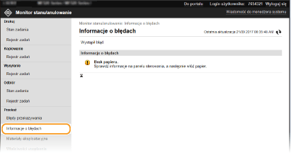Po zalogowaniu w trybie menedżera systemu można kliknąć [Numer zadania], aby wyświetlić szczegółowe informacje lub podgląd dokumentu, który nie mógł zostać przekazany.