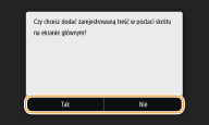 W przypadku wybrania opcji <Tak> zostanie wyświetlony komunikat. Sprawdź komunikat, a następnie wybierz przycisk <OK>. Kombinacja zapisanych ustawień zostanie dodana do ekranu Główny jako przycisk skrótu.