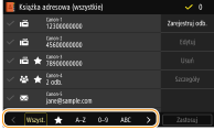 Często używane miejsca docelowe faksowania/skanowania można zarejestrować w książce adresowej, co ułatwia ich wybieranie (Zapisywanie odbiorców w książce adresowej). Odbiorców można wyszukiwać alfabetycznie z list w książce adresowej lub poprzez wprowadzenie trzycyfrowego numeru (numeru wybierania kodowego). Określanie odbiorców można przyspieszyć, używając następujących opcji.