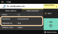 W przypadku wybrania odbiorcy z <Książka adresowa> na ekranie Główny dla wysyłania I-faksu może zostać wyświetlony ekran Podstawowe funkcje, podczas gdy wybrany odbiorca pozostaje wskazywany.