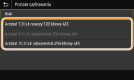Opcję <Acrobat 10.0 lub odpowiednik/256-bitowy AES> można zmienić na <Acrobat 9.0 lub odpowiednik/256-bitowy AES> o innej zgodnej wersji. <Ust.256-bit. AES (szyfr. PDF)>