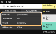 Podczas załączania zeskanowanych oryginałów do wiadomości e-mail można określić temat, treść wiadomości, adres zwrotny oraz priorytet wiadomości e-mail przed jej wysłaniem.