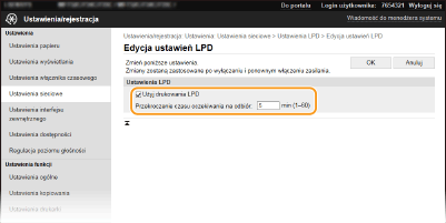 Zaznaczenie tego pola wyboru umożliwia wydruk za pomocą protokołu LPD. Jeśli drukowanie za pomocą protokołu LPD nie jest używane, należy usunąć zaznaczenie tego pola wyboru. [Użyj wydruku RAW]