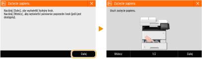 Podczas usuwania zakleszczonego papieru nie wolno wyłączać urządzeniaPo wyłączeniu urządzenia dane, które miały zostać wydrukowane, zostają utracone. Należy zachować szczególną ostrożność w przypadku odbioru faksów.