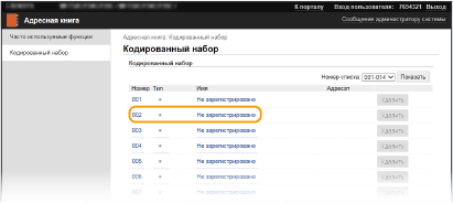 Адресатов также можно зарегистрировать в списке часто используемых функций. В этом случае щелкните [Часто используемые функции] вместо [Кодированный набор].