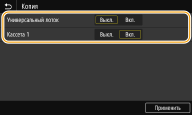 Для каждого источника бумаги, для которого требуется применить функцию автоматического выбора источника бумаги, выберите <Вкл.>.