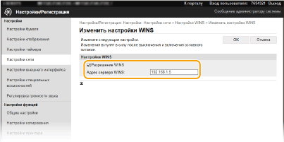 Если IP-адрес сервера WINS получен от сервера DHCP, полученный IP-адрес переопределяет IP-адрес, заданный в текстовом поле [Адрес сервера WINS].