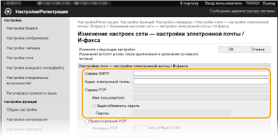 Если настроена аутентификация SMTP (SMTP AUTH), при отправке электронной почты или интернет-факса производится идентификация по имени пользователя и паролю.
