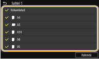 Hoolitsege selle eest, et märkeruudud on valitud ainult sageli kasutatavate paberisuuruste jaoks.