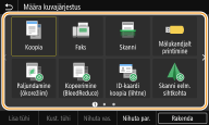 Saate lisada kuvale Avamenüü sageli kasutatavate funktsioonide (nt <Koopia>, <Faks> ja <Skanni>) nuppe. Näiteks saate ülesandeid kiiremini ja tõhusamalt täita, kui määrate üheainsa nupu alla sätete jada (nt „Skanni dokumendi mõlemad küljed, salvesta see tugevasti tihendatud PDF-failina ja saada meiliga”).