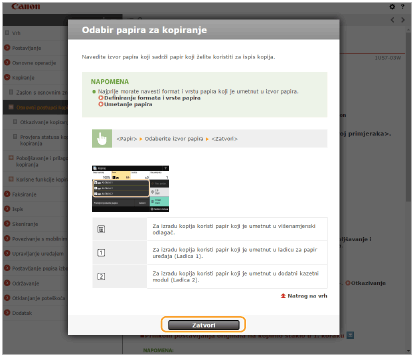 Kada kliknete ikonu, trenutna će se stranica može zatamniti i prikazat će se skočni prozor. Da biste se vratili na stranicu, kliknite [Zatvori] u skočnom prozoru.