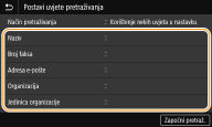 Odaberite uvjete za korisničke podatke koje želite pretražiti.