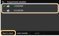Potvrdite okvir za odredište koje želite izbrisati, a zatim odaberite stavku <Ukloni iz odred.>.