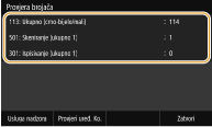 <Provjeri uređ. Ko.> omogućuje provjeru dodatnih jedinica instaliranih na uređaju.