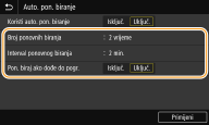 odaberite stavku <Uključ.> u odjeljku <Koristi auto. pon. biranje>