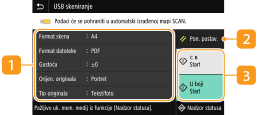 Sprema skenirane podatke na računalo. Zaslon s osnovnim značajkama za skeniranje putem računala