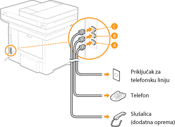 Priključite telefonski kabel u utičnicu za telefonsku liniju na uređaju (