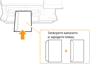 Зареждайте пликовете така, че краят с капака да е насочен към лявата страна, както е показано на илюстрацията.