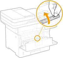 Когато предният капак се отвори и затвори, съобщението за заседнала хартия изчезва.