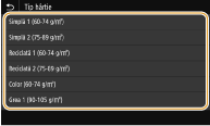 După ce este înregistrată setarea implicită, ecranul pentru setarea hârtiei nu este afişat când încărcaţi hârtie şi este folosită aceeaşi setare mereu. Dacă încărcaţi o altă dimensiune de hârtie fără a modifica setările hârtiei, este posibil ca aparatul să nu imprime corect. Pentru a evita această problemă, selectaţi <Specificare la încărcarea hârtiei> în pasul 3, apoi încărcaţi hârtia.
