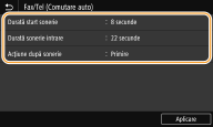 Puteţi seta aparatul să primească automat faxuri când un apel telefonic sună pentru un anumit interval. <Comutare la RX automat>