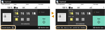 Správy sa zobrazujú na obrazovke v situáciách, keď sa napríklad minie papier alebo sa dosiahne čas životnosti kazety s tonerom.