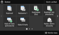 Môžete zmeniť usporiadanie tlačidiel zobrazených na obrazovke Domov. Navyše môžete prispôsobiť obrazovku Domov a zjednodušiť výber funkcií pridaním tlačidiel skratiek. Prispôsobenie obrazovky Domov