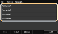 Uloženie obľúbených nastavení