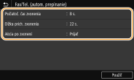 Stroj môžete nastaviť na automatický príjem faxov v rámci špecifikovaného časového rámca, keď zazvoní príchodzí hovor. <Prepnúť na automatický PR.>