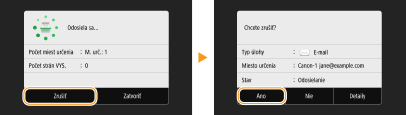 Ak chcete zrušiť odosielanie dokumentov ihneď po výbere položky <Štart>, vyberte položku <Zrušiť> na displeji alebo stlačte tlačidlo . Odosielanie dokumentov môžete zrušiť aj po kontrole stavu odoslania.