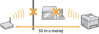 Nie sú medzi strojom a bezdrôtovým smerovačom žiadne prekážky, ako napríklad steny?