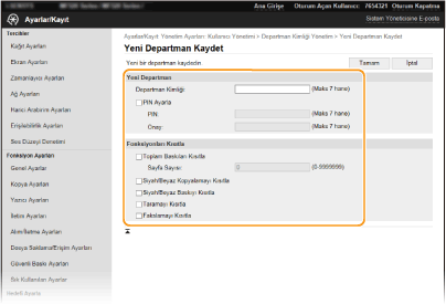 Departman Kimliğini ve PIN'i Kaydetme/Düzenleme