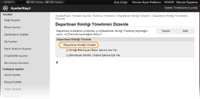 Departman Kimliği Yönetimini etkinleştirmek için onay kutusunu seçin. Departman Kimliği Yönetimini kullanmak istemiyorsanız, onay kutusunu temizleyin.