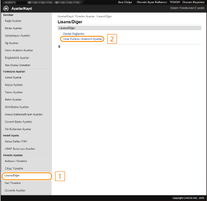Uzak Kullanıcı Arabiriminden makineyi ayarlarken gerçekleştirilecek temel işlemler hakkında bilgi için bkz. Uzak Kullanıcı Arabiriminden Menü Seçeneklerini Ayarlama.