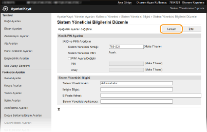 Bazı ayarları yalnızca, Sistem Yöneticisi Modunda oturum açtığınızda değiştirebilirsiniz.