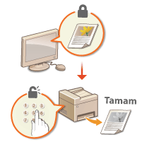 Normalde bilgisayarınızdan bir şey yazdırdığınızda yazıcıdan hemen çıktı alırsınız. Ancak hassas belgeleriniz varsa, bunu istemeyebilirsiniz. Güvenli yazdırmayı kullandığınızda kimse, makinenin işletim paneline parolanızı girmeden belgelerinizi yazdıramaz. Gizli belgelerinizin tepside herkesin gözü önünde çıkmasına izin vermeyin.