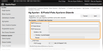 I-Faks göndermek ve almak için makineyi kullanma ayarları ve e-posta ya da I-Faks göndermeden önce iletişimin POP kimlik doğrulama ve şifreleme ayarları gibi ayrıntılı gönderme ve alma ayarlarını yapılandırmak için Uzak Kullanıcı Arabirimini kullanın. Gerekli ayarlar için sağlayıcınız veya ağ yöneticiniz ile iletişime geçin.
